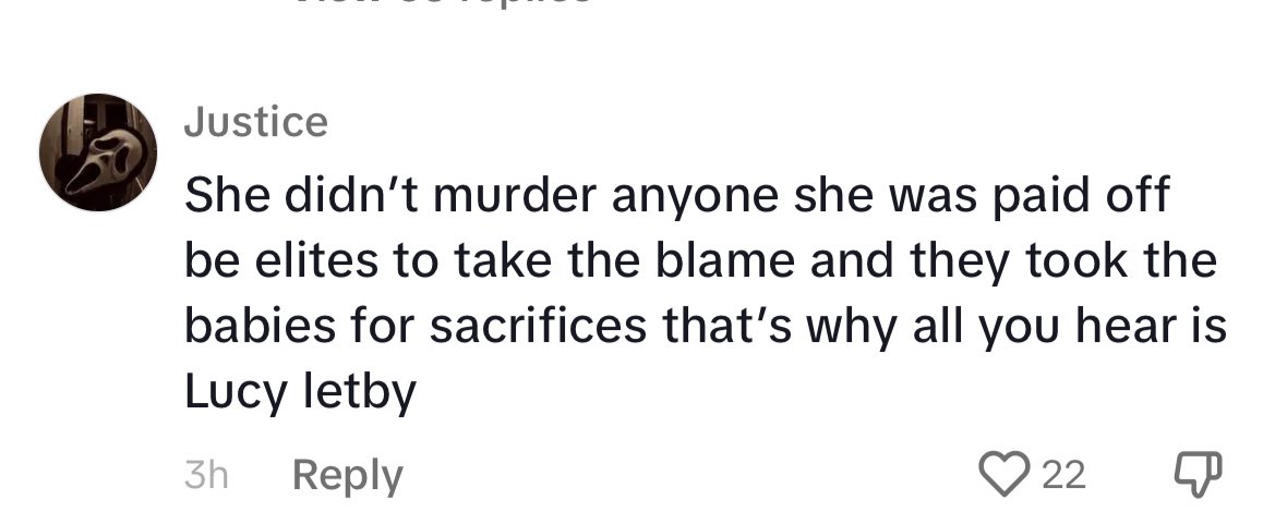 April 4, 2025 at 10:33 pm #301703I have noted that anti-vaxxer, covid denialist, chemtrail believing conspiracy theorists tend to sway towards Letby is innocent messaging.