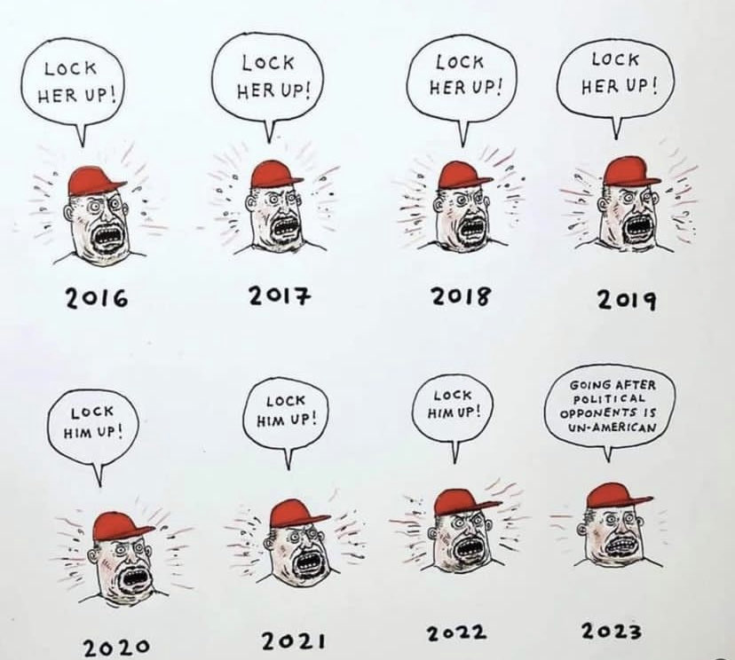 A final comment on your … ‘Lock her up! Lock him up! … cartoon. V amusing ..yet laden with deadly potential. I agree with the final caption but with a qualifier. ‘Going after political opponents (using the legal system for political purposes) is un-American.’ Its undemocratic, its dangerous and it’s corrosive of trust and societal harmony.