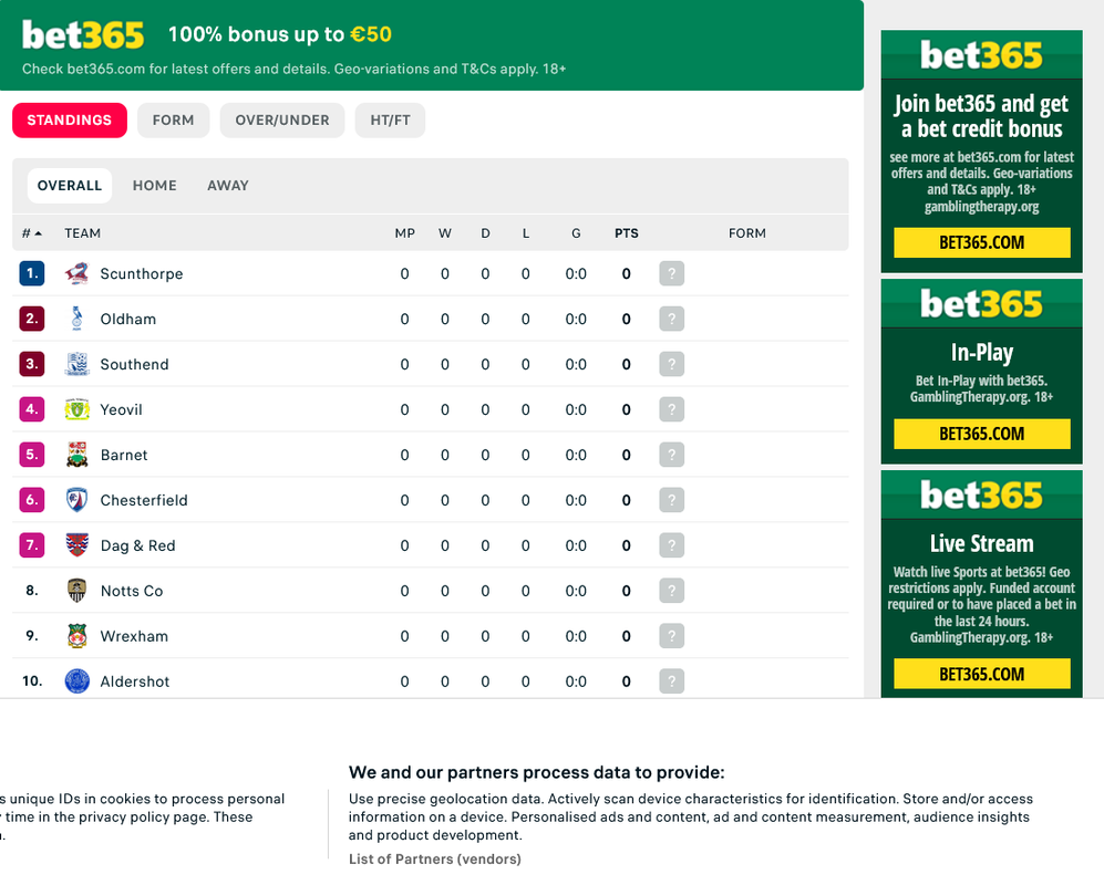 An omen or not .. log into the FLASHSCORE website and go to the National league section and there is the table already listed without a game being played yet and Scunny sit proudly on the top .. take a screen shot it may not happen again for a long time.